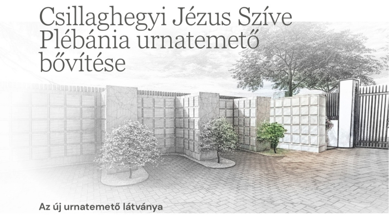A Csillaghegyi Jézus Szíve Plébánia Képviselőtestületének döntése alapján - az Esztergom- Budapesti Főegyházmegye erkölcsi és anyagi támogatásával - lehetőség nyílt a templomhoz tartozó urnatemető bővítésére. Az egyház középkori szokásaihoz is igazodva a templomkertben megvalósuló bővítés első szakasza 2026. március végére elkészül, így ismét sor kerülhet templomunkban urnás temetésre. A Magyar Katolikus Püspöki Konferencia által 2015-ben kiadott Temető Szabályzata alapján az egyházi urnatemetőben általában – felekezettől függetlenül- annak a halottnak a hamvait tartalmazó urna helyezhető el, akit megkereszteltek. Ez alól a követelmény alól a szabályzat által meghatározott speciális esetekben – a körülmények mérlegelése alapján- a plébános felmentést adhat.